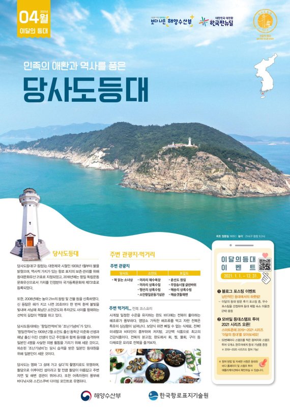 [서울=뉴시스] 박성환 기자 = 해양수산부(장관 문성혁)는 4월의 등대로 전남 완도군에 위치한 '당사도 등대'를 선정했다고 31일 밝혔다.