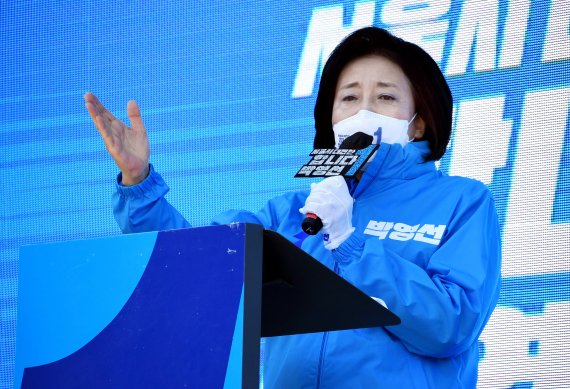 박영선 더불어민주당 서울시장 후보가 당명조차 적혀 있지 않은 점퍼를 입고 유세에 나섰다. 또 문재인 대통령에 대한 언급 횟수도 크게 줄어들었다. 이는 정부·여당을 향한 민심의 싸늘한 시선을 의식한 행보로 풀이된다.