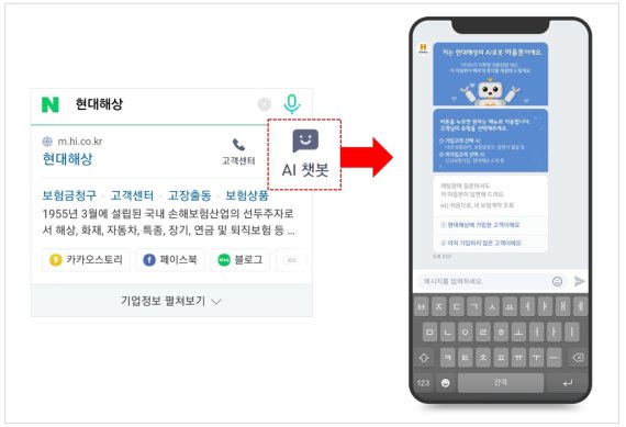 마음봇은 네이버 모바일 검색결과 화면에 AI 챗봇 연결 아이콘이 배치되는 국내 최초의 챗봇 모델로, 고객들은 '현대해상' 홈페이지나 앱으로 이동해야 하는 번거로움 없이 네이버 검색결과 화면 안에서 곧바로 챗봇 접속이 가능해 신속하고 편리하게 서비스를 이용할 수 있다.