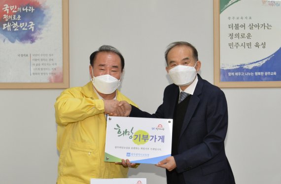 [광주=뉴시스] 구용희 기자 = 광주시교육청은 6일 교육감실에서 광주서점조합과 광주희망기부가게 운영을 위한 업무 협약을 체결했다고 밝혔다.