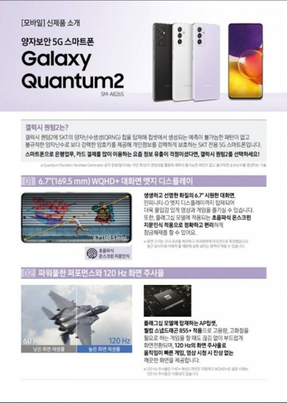 SK텔레콤의 두 번재 ‘양자보안 5G 스마트폰’인 갤럭시 퀀텀2로 보이는 제품의 디자인과 사양이 등장했다.