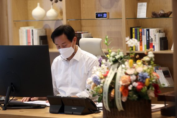 9일 서울시에 따르면 오 시장은 문 대통령으로부터 서울시장 당선을 축하하는 난이나 화환을 아직 받지 못한 것으로 알려졌다.