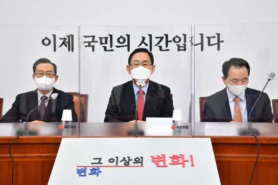 주 권한대행은 이날 국회에서 열린 비대위 회의에서 "이번 4.7재보선에서 드러난 민심은 문재인 대통령과 민주당의 국정방향을 완전히 바꾸라는 요구였다"며 이같이 말했다.