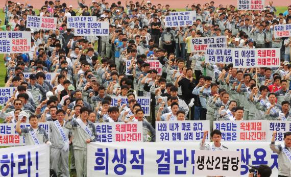 다만 현재 쌍용차 노조는 민주노총을 탈퇴하고 기업노조로 전환한 상태다. 2009년 이후 현재까지 한번도 파업이 없었고 유동성 위기가 본격화 되자 임금삭감에도 합의했다. 법정관리 신청 후 연초 협력사들의 납품거부가 잇따르자 임금 50% 지급 유에도 받아 들였다. 다만 대규모 구조조정이 불가피한 상황에서 이를 받아들일지는 미지수다. 쌍용차 노조는 지난 2월 총 고용 유지를 전제로 회생계획에 적극 동참하겠다는 입장을 밝힌 바 있다.