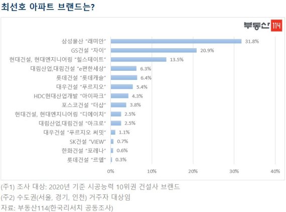 소비자가 응답한 최선호 브랜드도 삼성물산 래미안이 1위를 차지했다.