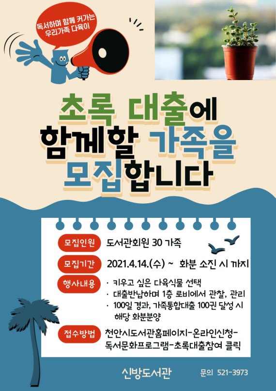100일 동안 가족 통합으로 100권을 대출한 가족은 이후 집에서 화분을 키울 수 있다.