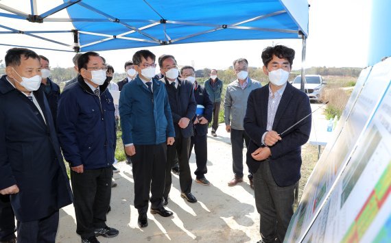 전남 영광 노지 디지털농업 현장실증단지 방문한 허태웅 청장 /사진=농촌진흥청