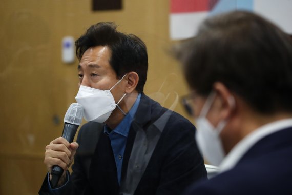 오세훈 서울시장이 18일 오후 서울시청에서 열린 '공시지가 관련 간담회'에서 발언하고 있다. 사진=박범준 기자