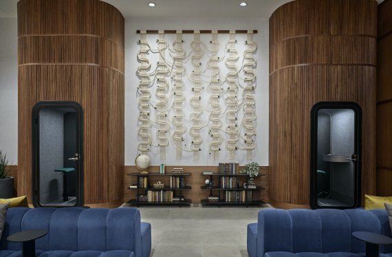 '방음 부스'도 로비 곳곳에 전략적으로 배치됐다. 이를 통해 고객은 타인의 방해를 받지 않고 멀리 떨어진 친구, 가족 또는 직장 동료와 자유롭게 전화할 수 있다.