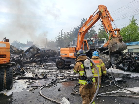 폐차장 내부에는 불이 붙기 쉬운 고무 타이어 등이 쌓여 있어 화재 진압이 오래 걸린 것으로 알려졌다.