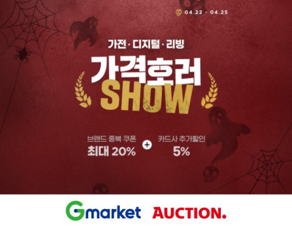 [파이낸셜뉴스] G마켓과 옥션은 22일 오전 10시부터 25일까지 ‘디지털리빙 가격호러쇼’를 동시 진행한다고 밝혔다. 이사, 혼수 시즌 ‘플렉스’ 소비 트렌드를 반영해 국내외 40여개 브랜드의 인기 제품을 최대 69% 할인가에 판매한다.