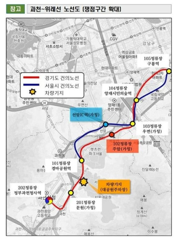 서초구가 주암역 대신, 선암IC역 설치를 요구하는 반면 과천시는 주암역 설치를 고수한다.