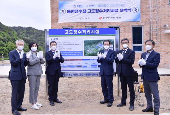 광주시는 27일 오후 용연정수장에서 이용섭 시장, 조석호·정순애 시의회 부의장, 최미정 시의회 환경복지위원, 염방열 상수도사업본부장 등이 참석한 가운데 고도정수처리시설 현판식을 가졌다.