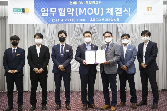 김우준, 이정환 대표는 "이번 협약으로 구미지역 대표 관광호텔인 호텔금오산과 경북서부지역 대표 방송사인 현대HCN새로넷방송이 함께 구미지역 관광·경제활성화를 위한 공동 협력에 적극 지원할 것"이라고 말했다.