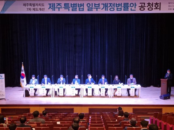 국무조정실과 제주도는 28일 오후 제주시 설문대여성문화센터 공연장에서 제주특별법 일부개정법률안에 대한 공청회를 개최했다.