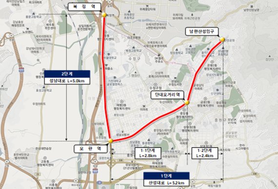 산성대로에서 성남대로까지 확대 총연장 10.2km