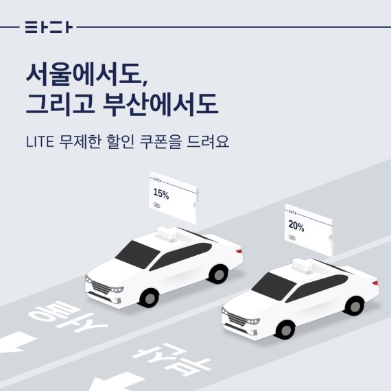 쏘카의 자회사 VCNC는 지난달부터 실시해온 타다 라이트 최대 20% 상시 할인 혜택을 5월까지 진행한다고 30일 밝혔다. 부산에선 20%, 서울과 성남에선 15% 할인 혜택을 제공한다.