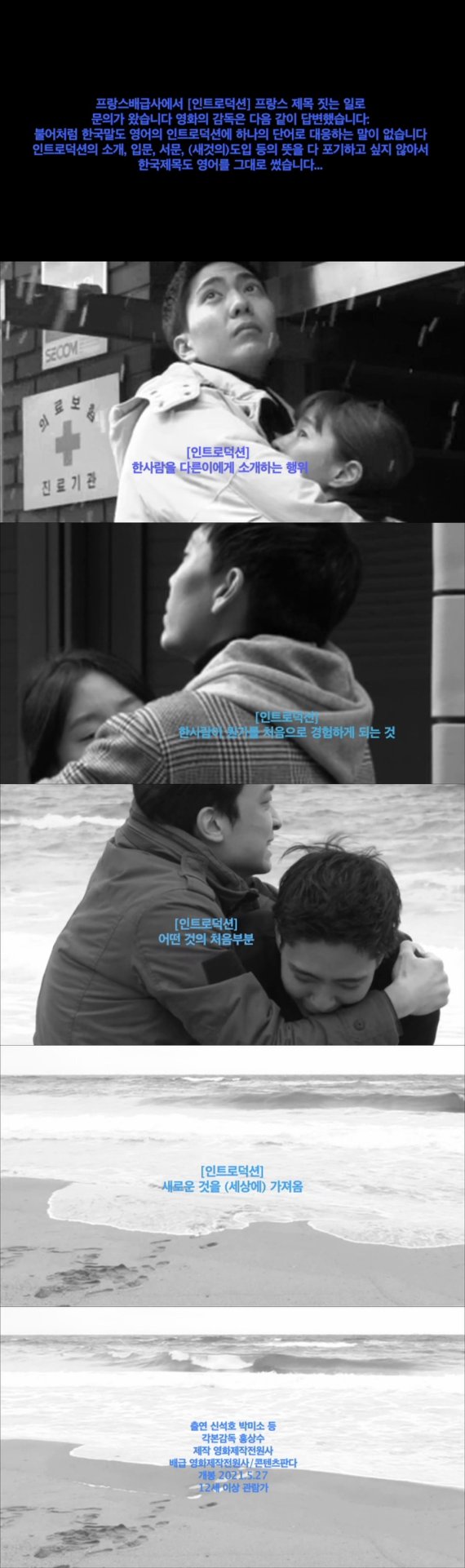 이번에 공개된 메인 예고편은 '인트로덕션'이라는 영화의 타이틀에 대한 홍상수 감독의 서문이 담겼다.