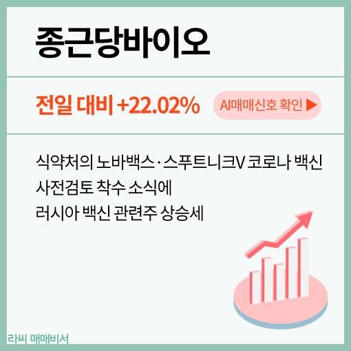 [라씨매매비서 오늘의 관심종목] 종근당바이오, 보령제약, STX중공업, 지니틱스, 현대미포조선