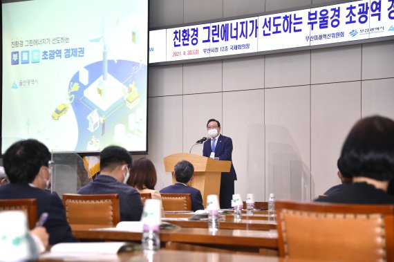 송 시장은 이날 부산·울산·경남 광역지방자치단체 간 초광역 협력사업을 추진하는 특별지자체인 '부·울·경 광역특별연합' 메가시티의 필요성과 친환경 그린에너지 사업을 지역의 미래 신성장 사업으로 육성해야 하는 당위성을 강조했다.