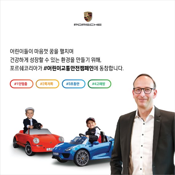 홀가 게어만 포르쉐코리아 대표는 "이번 캠페인은 어린이들이 마음껏 꿈을 펼치며 건강하게 성장할 수 있는 환경을 만들기 위해 노력하는 포르쉐코리아의 사회공헌 철학을 반영하고 있다"며 "릴레이 챌린지 참여를 통해, 어린이 및 교통 약자의 안전을 먼저 생각하는 성숙한 교통 문화를 모두가 실천할 수 있도록 적극 장려하고 싶다"고 강조했다.