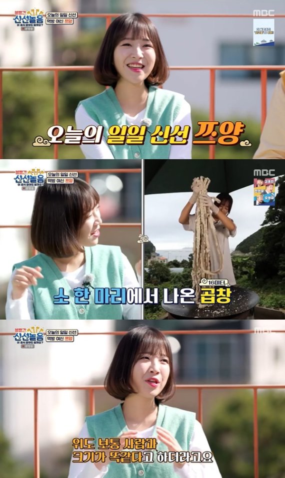 쯔양은 30일 방송된 MBC '볼빨간 신선놀음'에 출연해 "완전 육식파다. 채소를 거의 못먹는다"라고 말했다. 쯔양은 16m 곱창, 라면 20봉지, 초밥 240개 등 다양한 먹방을 선보여 화제를 모았다.