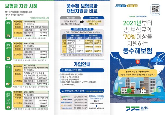 [수원=뉴시스] 이병희 기자 = 경기도가 태풍, 집중호우, 강풍 등 자연재해로 발생하는 재산 피해에 대비할 수 있는 '풍수해보험' 가입을 적극 권장했다.
