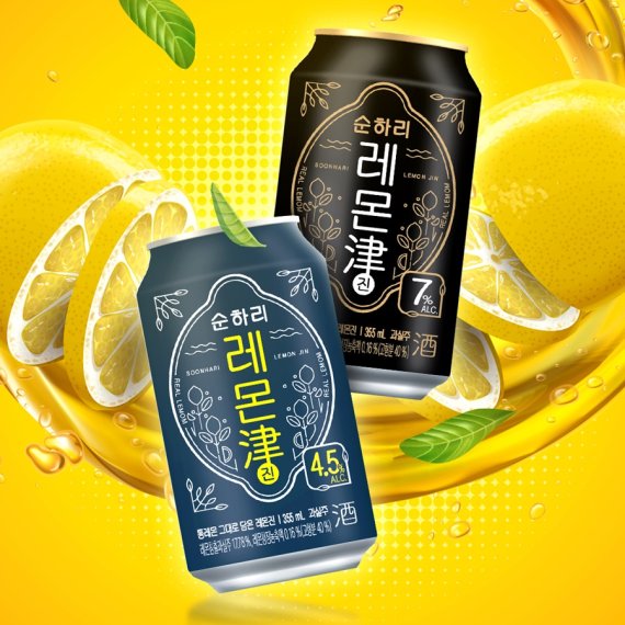이번 신제품은 캘리포니아산 통레몬 그대로 레몬즙을 침출해 더욱 상큼하고 새콤한 레몬맛을 살렸다. 4.5도의 '순하리 레몬진 레귤러'와 7도의 '순하리 레몬진 스트롱' 2종으로 선보인다.
