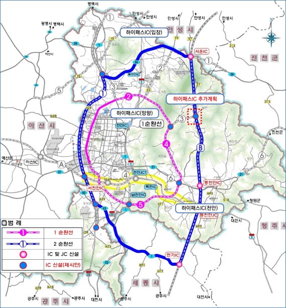 교통계획은 도심 내 혼잡한 통과교통의 문제점을 해소하기 위해 기존 계획도로망을 기반으로 ▲번영로~서북 ▲성거간도로~성거 ▲목천읍 우회도로~ 신방 ▲목천읍 우회도로 등를 잇는 제1순환망 계획을 반영했다.