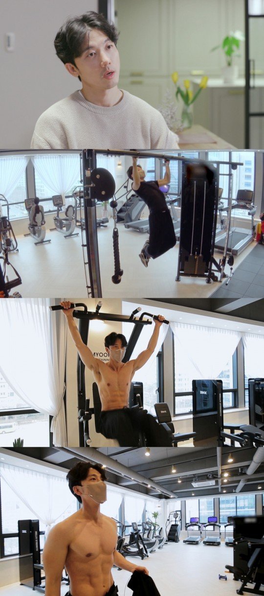이날 기태영은 운동 중 과감한 상의 탈의로 복근을 공개했다.