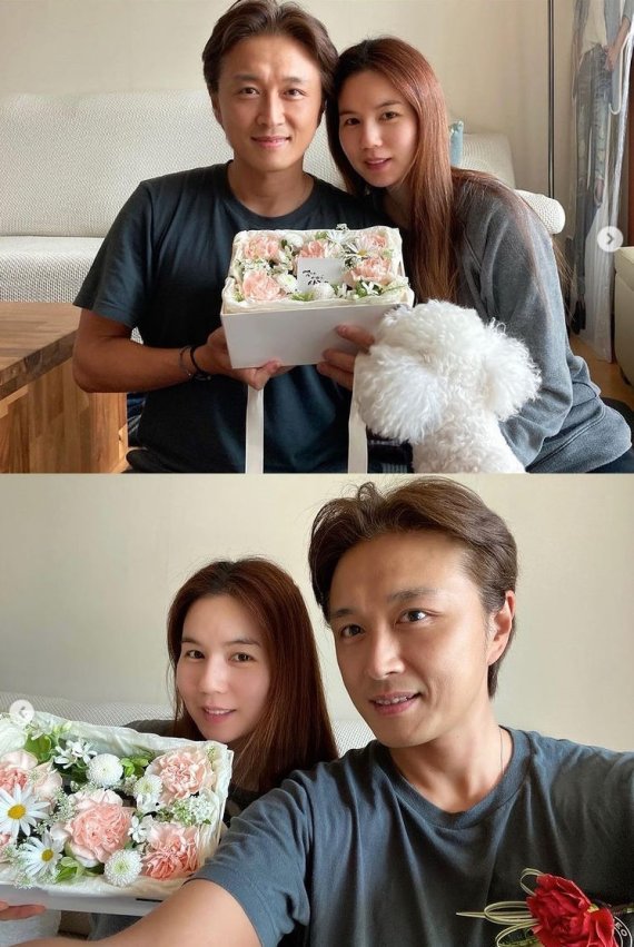 사진 속 진태현과 박시은 부부는 딸 다비다양이 선물한 것으로 보이는 꽃 상자를 든 채 집안에서 포즈를 취했다. 훈훈한 부부의 모습이 눈길을 끈다.