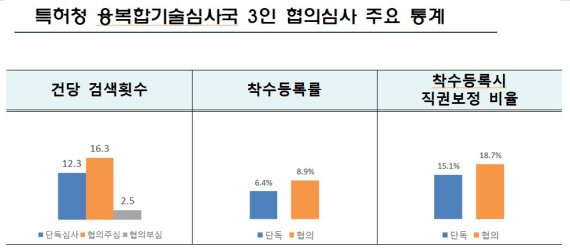 협의심사는 하나의 발명(출원)에 대해 심사관 3명이 함께 참여한다. 기존의 단독심사보다 전문적인 검토가 이뤄지고 절차도 효율적으로 진행돼 심사기간이 단축되는 효과가 나타났다.