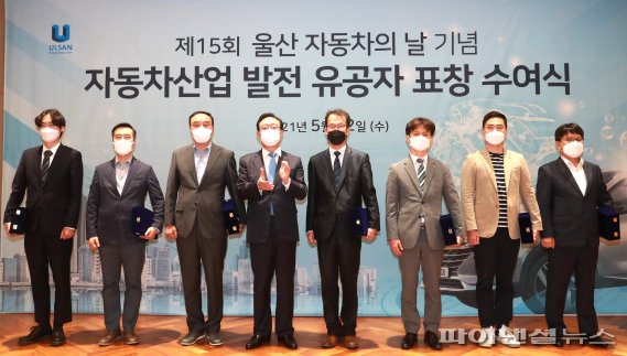 【파이낸셜뉴스 울산=최수상 기자】 ‘제15회 울산 자동차의 날’이 12일 오후 2시 울산시청 시민홀에서 열려 자동차산업 발전에 힘쓴 14명에게 유공자 표창이 수여됐다.