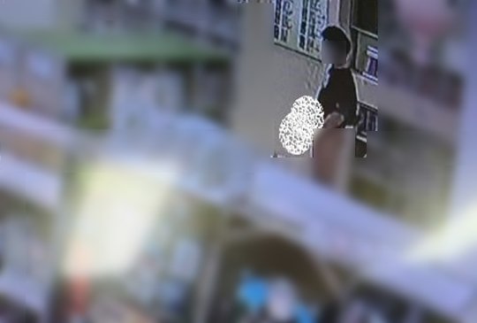 사진 속 남성은 검은색 티셔츠와 회색 운동복 바지를 입고 검은색 뿔테안경을 쓰고 있었다. 또 이 남성은 허리 높이까지 오는 책장 뒤에서 건너편을 바라보며 바지를 내리고 자위 행위를 하는 듯 했다.
