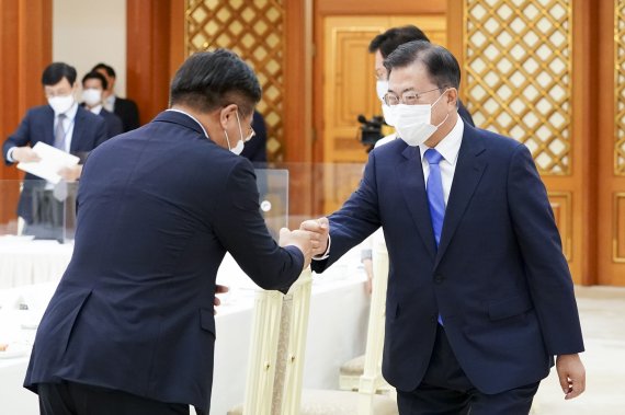 이에 문 대통령은 "대선에선 당이 주도해 미래 비전 제안해달라"며 "당정청이 하나로 대한민국 미래를 위해 목표를 제시하고 정책 마련에 힘써달라"고 당부했다.