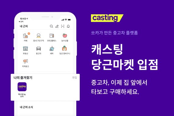 모빌리티 플랫폼 업체 쏘카는 자사가 운영하는 온라인 중고차 서비스 ‘캐스팅’이 당근마켓에 입점한다고 20일 밝혔다.