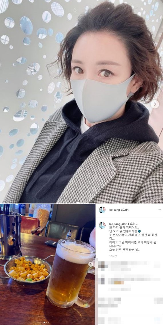 이상아는 지난 19일 자신의 SNS에 맥주와 치킨, 감바스 등의 안주 사진과 함께 "으앙. 또 자리 옮겨 치맥이야. 난 오리, 닭 안 좋아해요"라고 글을 게재했다.