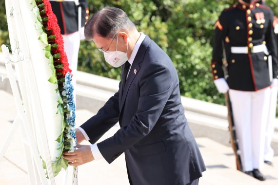 문 대통령은 루스벨트 대통령 기념관 방문 전에는 '한·미 혈맹'의 상징이자 미국의 성지인 알링턴 국립묘지를 참배했다.