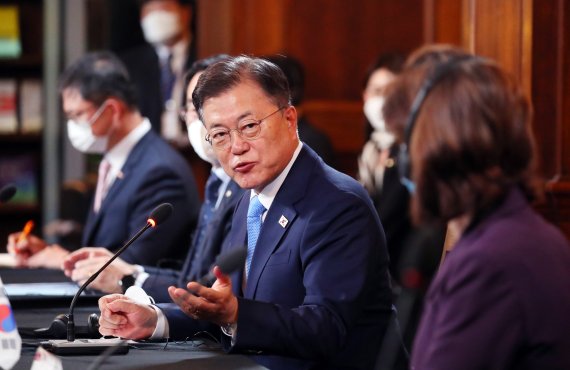 문 대통령은 이날 오전 미국 워싱턴 미 상무부에서 열린 양국 주요기업인들이 참석하는 한·미 비즈니스 라운드 테이블 행사에 참석해 "한국 기업들은 세계 2위의 바이오의약품 생산 능력을 갖추고 있다"며 "코로나 백신 개발을 주도하는 미국 기업들과 함께 전 세계 백신 보급 속도를 높여갈 최적의 협력자가 될 것"이라고 밝혔다.