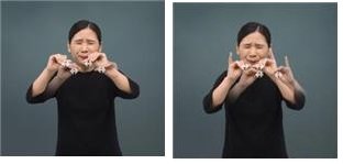 '미세먼지'는 두 가지 표현이 권장안으로 선정됐다. 미세먼지①은 아주 작다는 것을 의미하는 비수지기호와 '먼지' 수어를 함께 표현한다. 미세먼지②는 '매우 작다'를 의미하는 수어와 '먼지' 수어가 결합된 형태다.