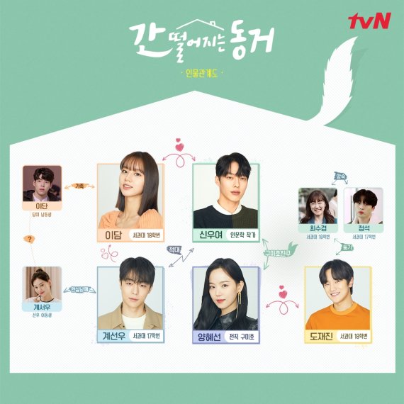 [파이낸셜뉴스] tvN 새 수목드라마 ‘간 떨어지는 동거’가 장기용, 이혜리를 중심으로 한 인물관계도를 공개했다.