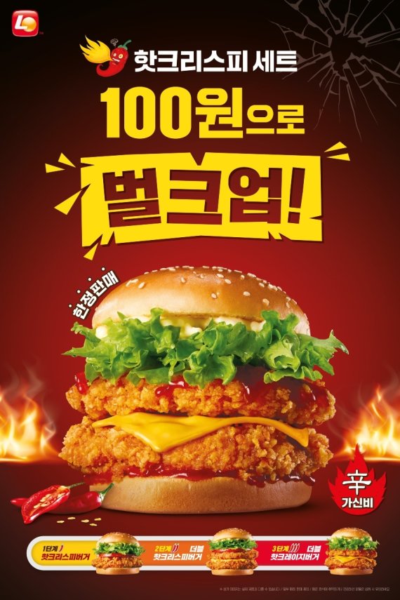 롯데GRS 관계자는 "MZ세대를 겨냥해 가성비와 구성을 업그레이드한 제품을 기획했다"며 "한 달 동안 롯데리아 크리스피버거 매운맛을 경험해 보길 바란다"고 말했다.