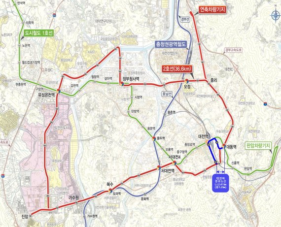 변경된 노선은 인동4거리에서 대전역 네거리를 지나 대전지하차도를 통과·우회전해 대동역으로 연결되는 경로로, 애초 노선보다 1.2㎞가 더 증설된다.