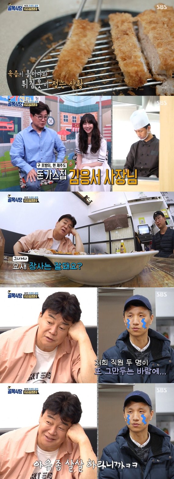 가운데가 덜 익은 두꺼운 돈가스와 관련해 사장은 "튀김옷이 축축하다"며 "육즙이 나와서 빵가루가 젖는다"고 고민을 토로했다.
