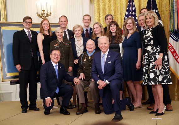 가장 인상 깊은 장면으로는 한국전 참전용사 명예훈장 수여식에서 문 대통령이 바이든 대통령과 함께 무릎을 꿇고 사진을 찍은 장면을 꼽았다.
