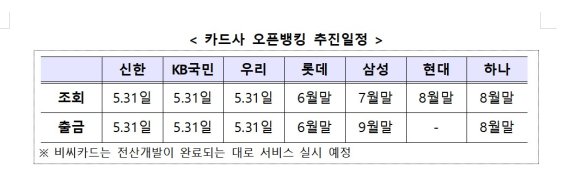 31일부터 신용카드도 오픈뱅킹 서비스 시작