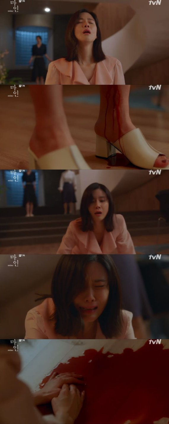 29일 오후 처음 방송된 tvN 토일드라마 '마인'(극본 백미경, 연출 이나정)에서는 서희수(이보영 분)의 유산이 암시되는 장면이 그려졌다. 서희수는 아들 하준(정현준 분)의 친모 이혜진(옥자연 분)을 집으로 데려온 사람이 자신의 남편 한지용(이현욱 분)이었으며 이혜진과 한지용이 지난 2년간 불륜 관계였다는 사실을 알게 됐고 그 충격으로 피를 흘리며 쓰러졌다.