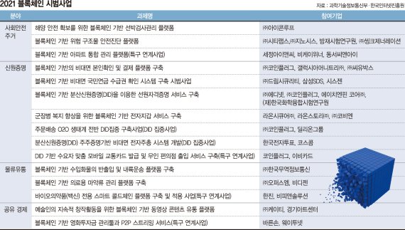 블록체인 시범사업은 과기정통부가 지난 해 6월과 7월 발표한 '블록체인 기술 확산전략'과 '디지털 뉴딜 종합계획'의 일환으로 추진하는 것이다.