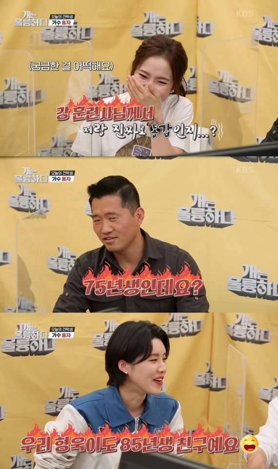 홍자는 "있어요. 강(형욱) 훈련사님이 저와 진짜로 (1985년 생) 동갑내기인지..."라고 물으며 민망한 웃음을 터뜨렸다.