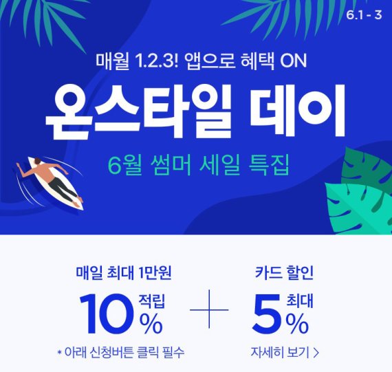 3일까지 진행하는 '온스타일데이X썸머세일' 행사에선 모바일앱 전 상품 구매시 적립금 10%를 지급한다. TV방송 패션 상품을 최초 세일하는 썸머패션 특집전도 행사기간 계속 운영한다.